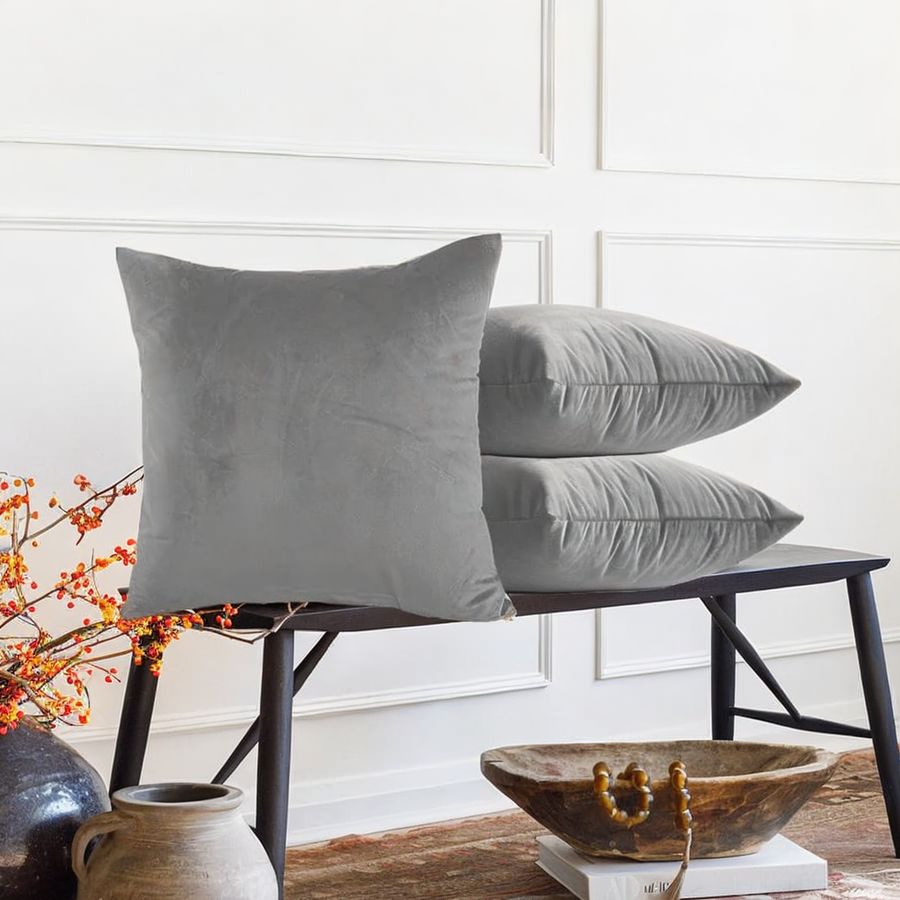 روکش کوسن ساده مخمل کالیفرنیا رنگ طوسی روشن 3عددی زیب مخفی۶۰۰٬۰۰۰ 7%