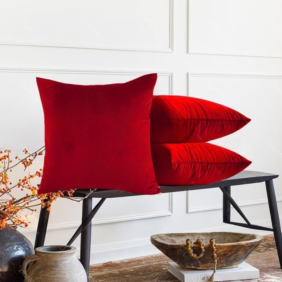 روکش کوسن ساده مخمل کالیفرنیا رنگ قرمز 3عددی زیب مخفی۶۰۰٬۰۰۰ 7%