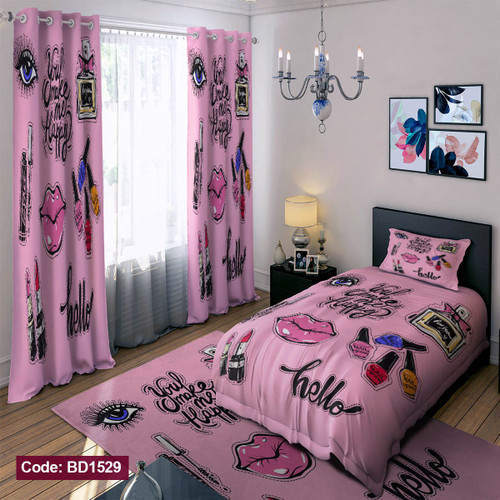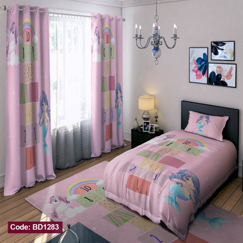 پرده پانچی مخمل چاپی دخترانه کد 1269