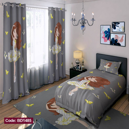 پرده پانچی مخمل چاپی دخترانه کد 1485