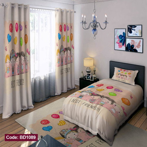 پرده پانچی مخمل چاپی دخترانه کد 1279