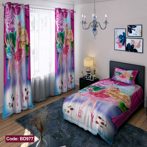 پرده پانچی مخمل چاپی دخترانه کد 977