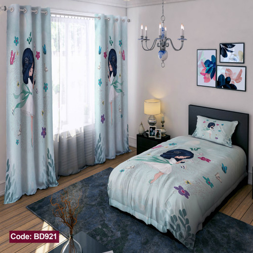 پرده پانچی مخمل چاپی دخترانه کد 921