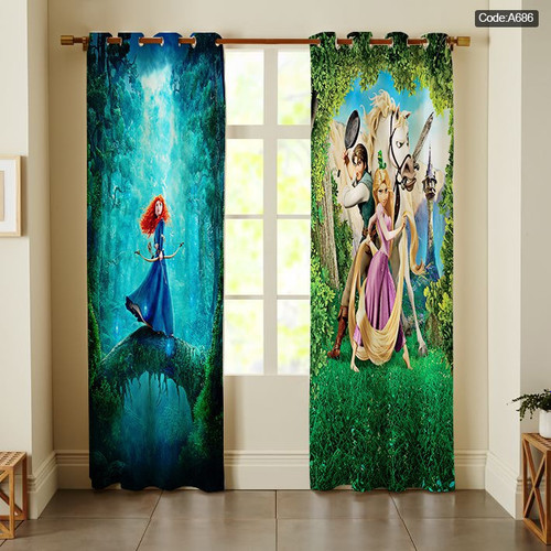 پرده پانچی مخمل چاپی دخترانه کد 686