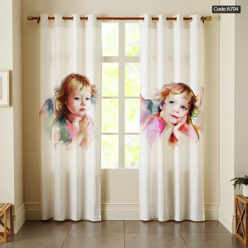 پرده پانچی مخمل چاپی دخترانه کد 704