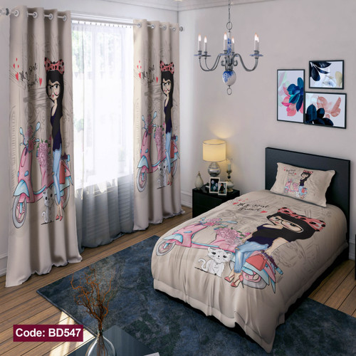 پرده پانچی مخمل چاپی دخترانه کد 547