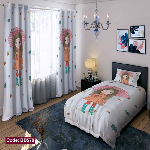 پرده پانچی مخمل چاپی دخترانه کد 578