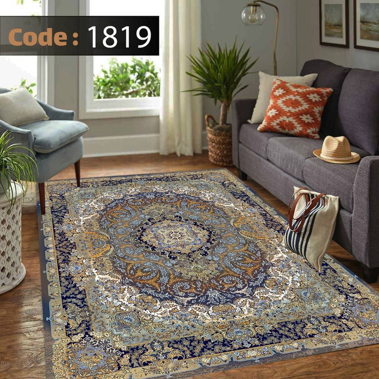 کاورفرش روفرشی دورکشدار گوشه لیفه ای لاکی ، آبی و متنوع کد 1819