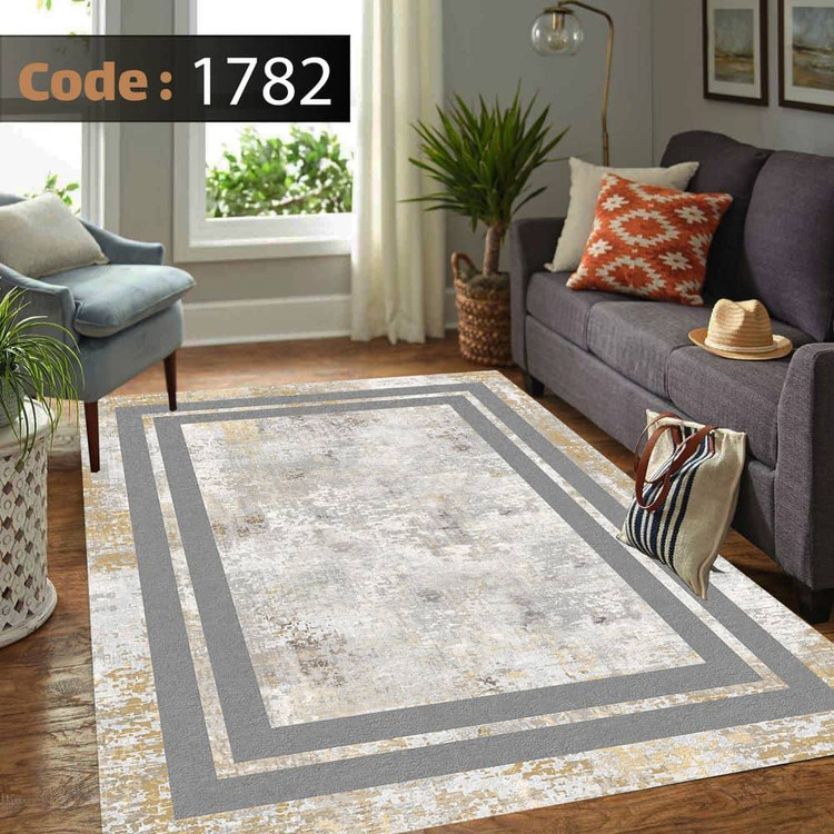 کاورفرش روفرشی دورکشدار گوشه لیفه ای طوسی کرم کد 1782