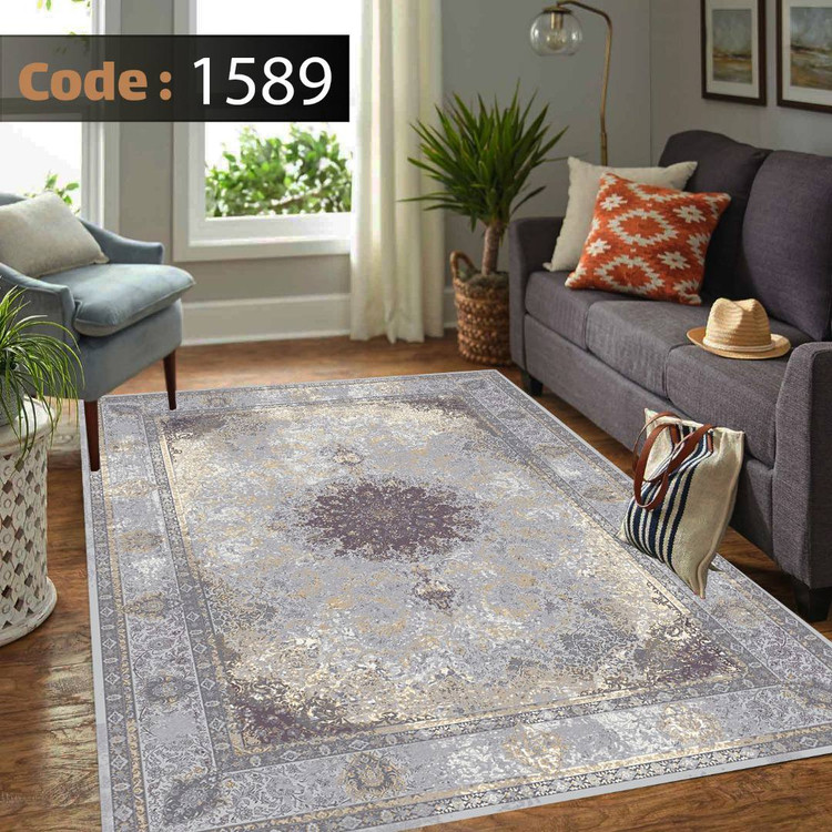 کاورفرش روفرشی دورکشدار گوشه لیفه ای طوسی کرم کد 1589