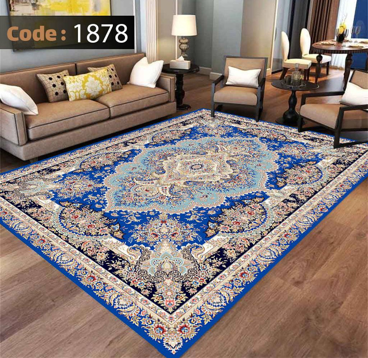 کاورفرش روفرشی دورکشدار گوشه لیفه ای لاکی ، آبی و متنوع کد 1878