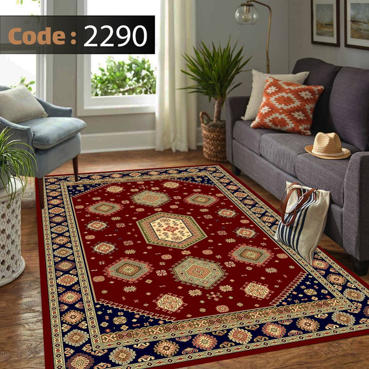 کاورفرش روفرشی دورکشدار گوشه لیفه ای لاکی ، آبی و متنوع کد 2290
