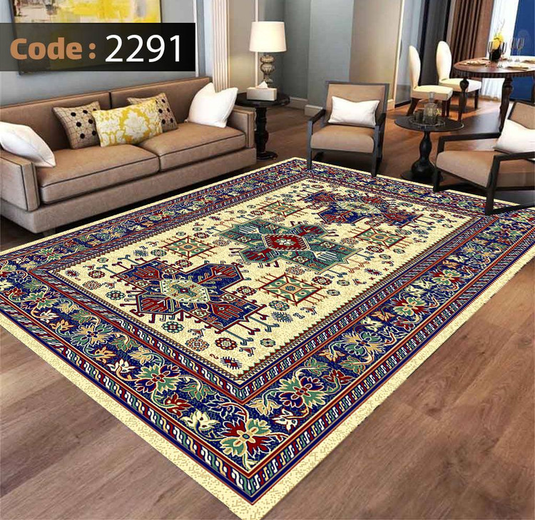 کاورفرش روفرشی دورکشدار گوشه لیفه ای لاکی ، آبی و متنوع کد 2291