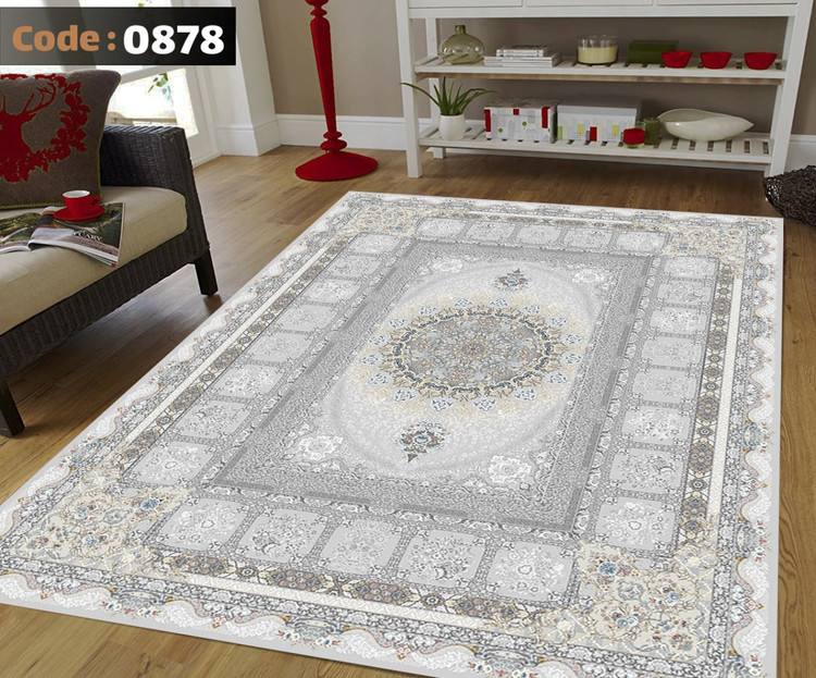 کاورفرش روفرشی دورکشدار گوشه لیفه ای طوسی کرم کد 0878