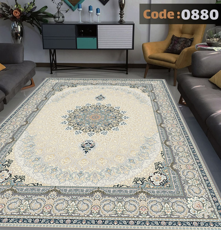 کاورفرش روفرشی دورکشدار گوشه لیفه ای طوسی کرم کد 0880