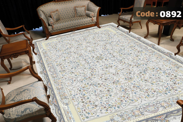 کاورفرش روفرشی دورکشدار گوشه لیفه ای طوسی کرم کد 0892
