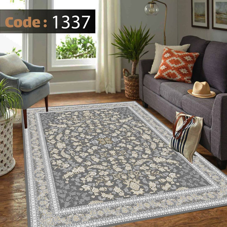 کاورفرش روفرشی دورکشدار گوشه لیفه ای طوسی کرم کد 1337