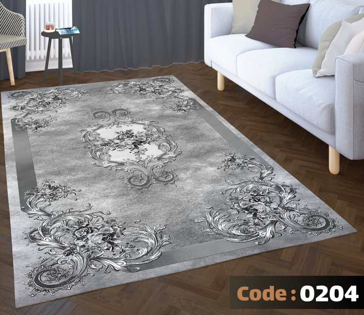 کاورفرش روفرشی دورکشدار گوشه لیفه ای طوسی کرم کد 0204