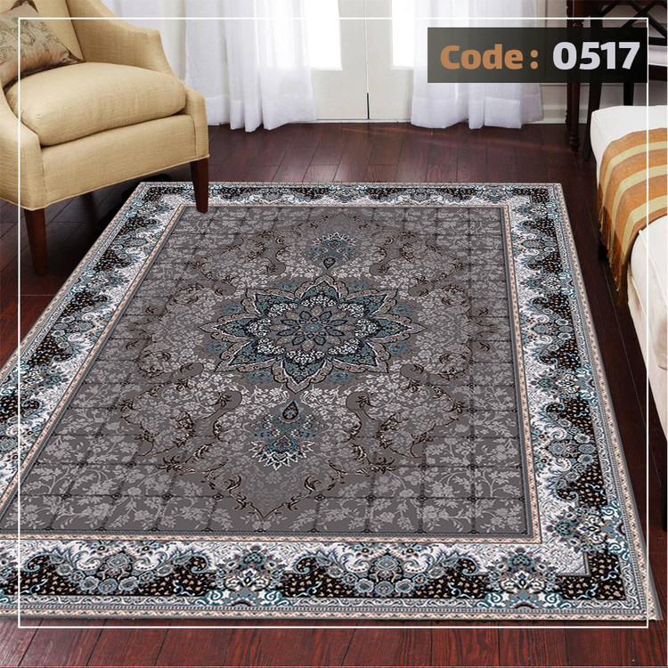 کاورفرش روفرشی دورکشدار گوشه لیفه ای طوسی کرم کد 0517