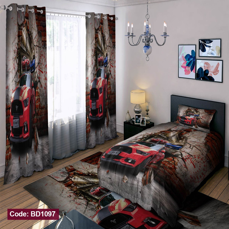 پرده پانچی مخمل چاپی پسرانه کد 1097
