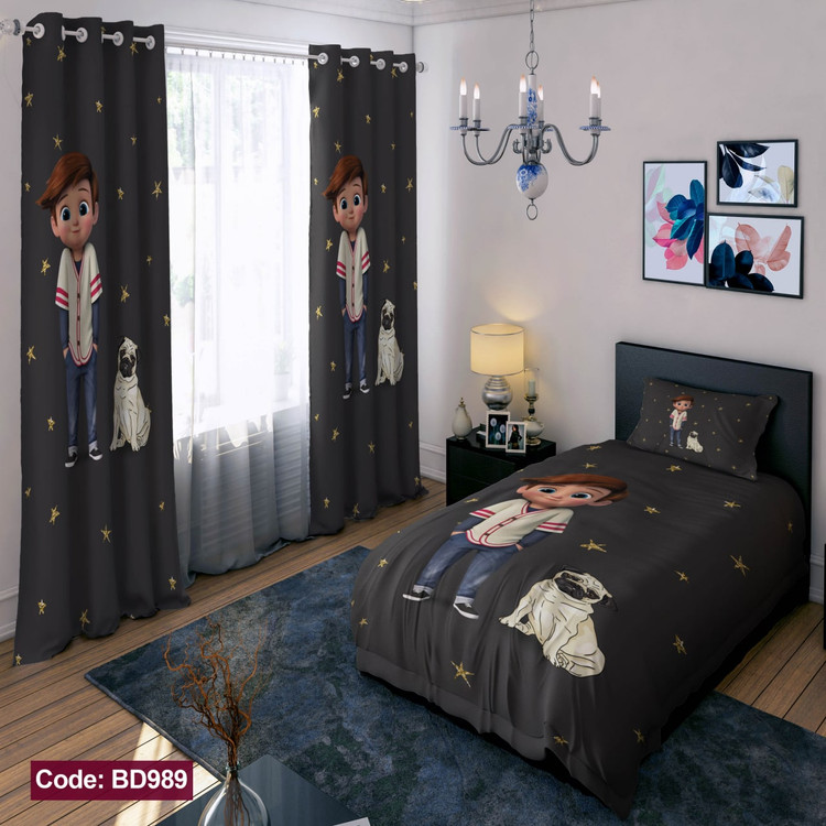 پرده پانچی مخمل چاپی پسرانه کد 989