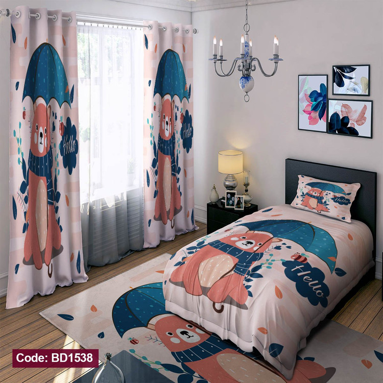 پرده پانچی مخمل چاپی دخترانه کد 1538