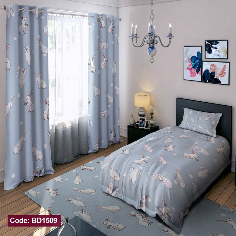 پرده پانچی مخمل چاپی دخترانه کد 1509