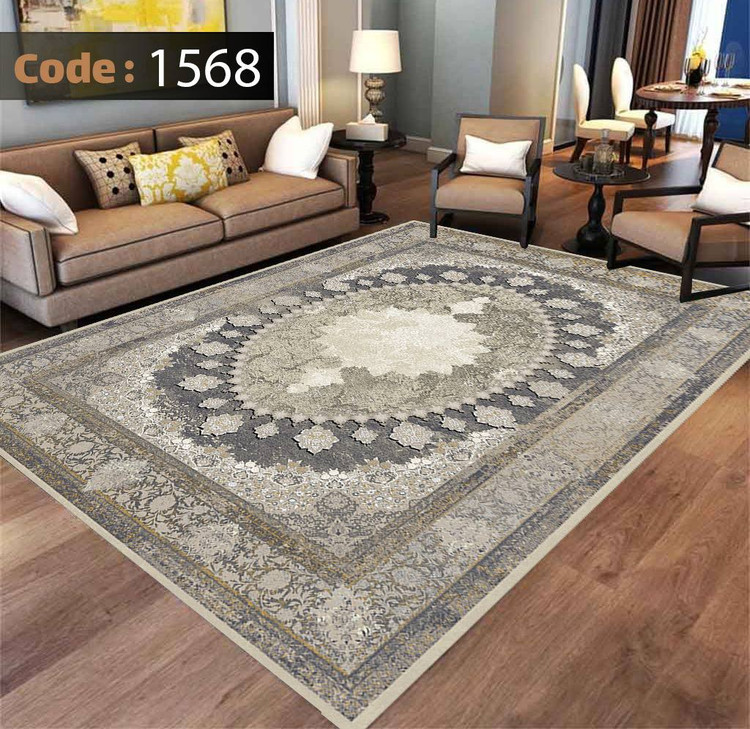 کاورفرش روفرشی دورکشدار گوشه لیفه ای طوسی کرم کد 1568