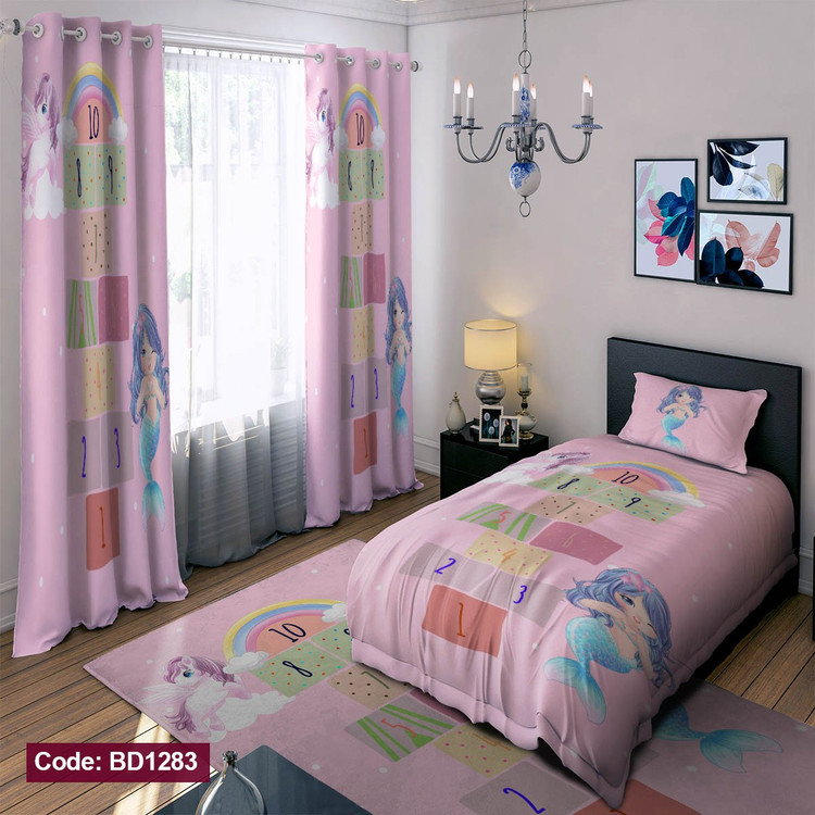 پرده پانچی مخمل چاپی دخترانه کد 1283