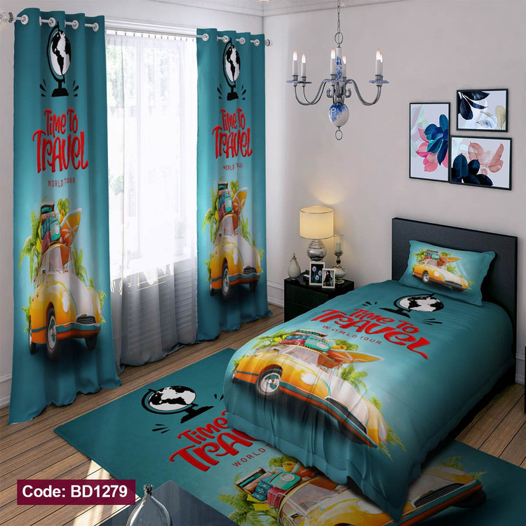 پرده پانچی مخمل چاپی دخترانه کد 1279