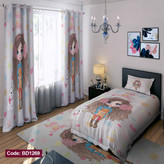 پرده پانچی مخمل چاپی دخترانه کد 1269