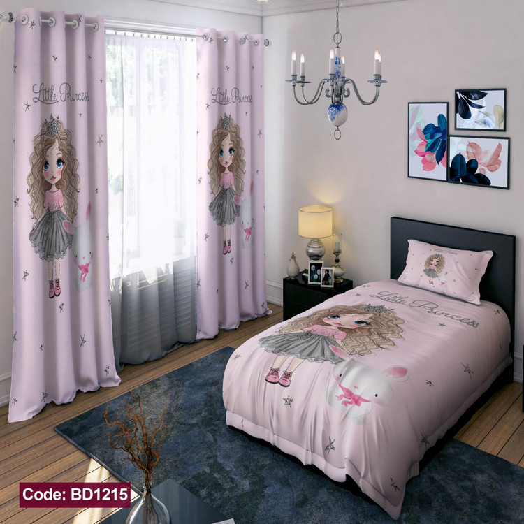 پرده پانچی مخمل چاپی دخترانه کد 1215