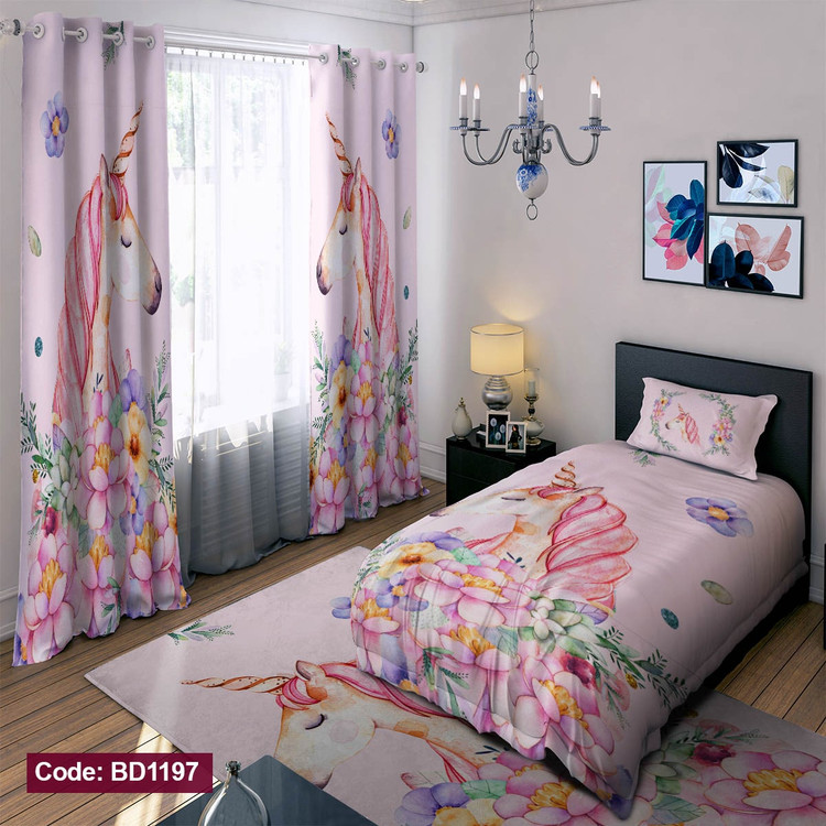 پرده پانچی مخمل چاپی دخترانه کد 1197