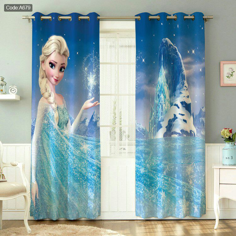 پرده پانچی مخمل چاپی دخترانه کد 679