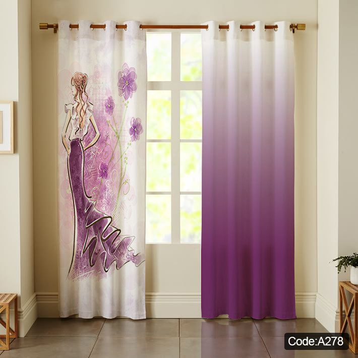 پرده پانچی مخمل چاپی دخترانه کد 278