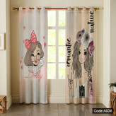 پرده پانچی مخمل چاپی دخترانه کد 934