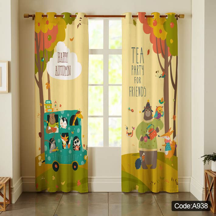 پرده پانچی مخمل چاپی دخترانه کد 938