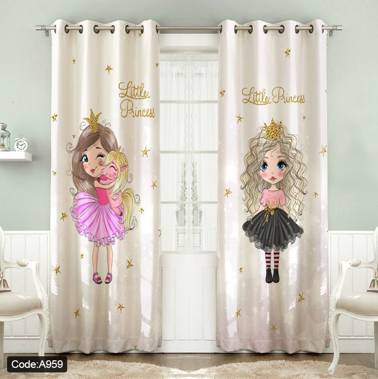 پرده پانچی مخمل چاپی دخترانه کد 959
