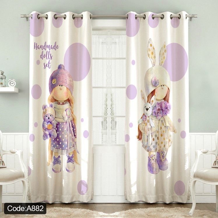 پرده پانچی مخمل چاپی دخترانه کد 882