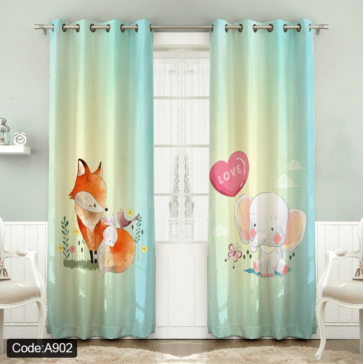 پرده پانچی مخمل چاپی دخترانه کد 902