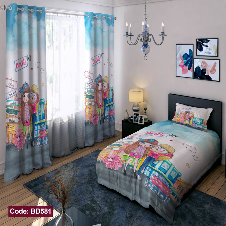 پرده پانچی مخمل چاپی دخترانه کد 581