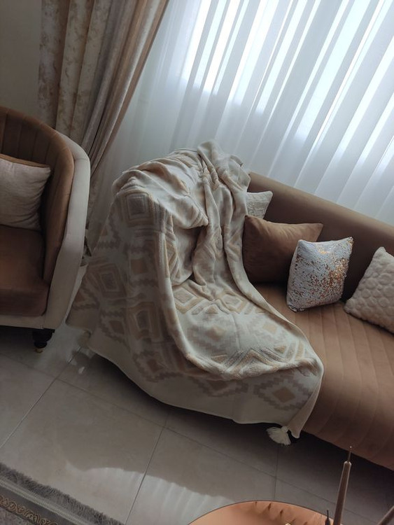 - این ست شامل شال مبل و کوسنهای بافت از جنس اکرولیک و با کیفیت است.