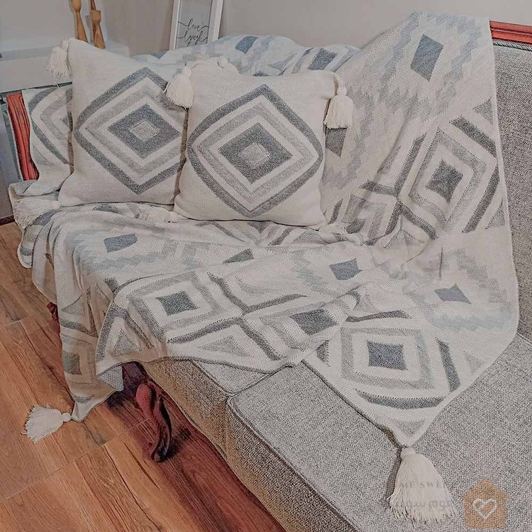 شال مبل برجسته طرح پانچ نخ اکریلیک کوسن ست موجود