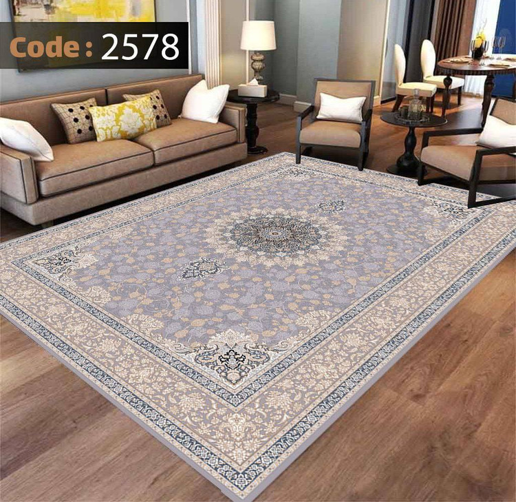کاورفرش روفرشی دورکشدار گوشه لیفه ای طوسی کرم کد 2578