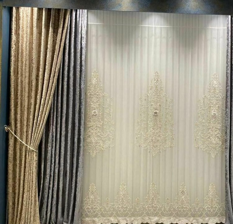 پرده دکور والان پرده مخمل پتینه براق طرح الیزه عرض 1.70