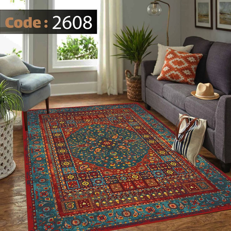 کاورفرش روفرشی دورکشدار گوشه لیفه ای لاکی ، آبی و متنوع کد 2608