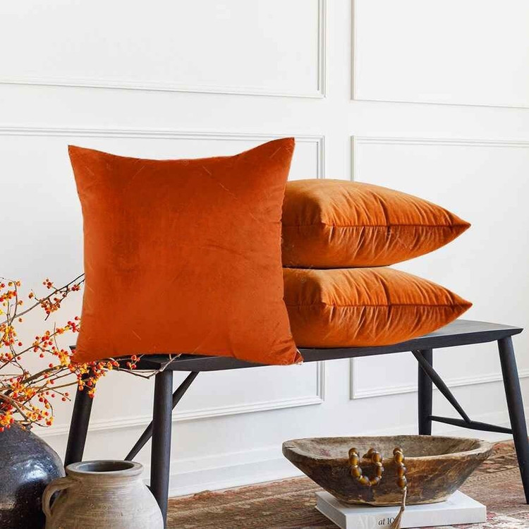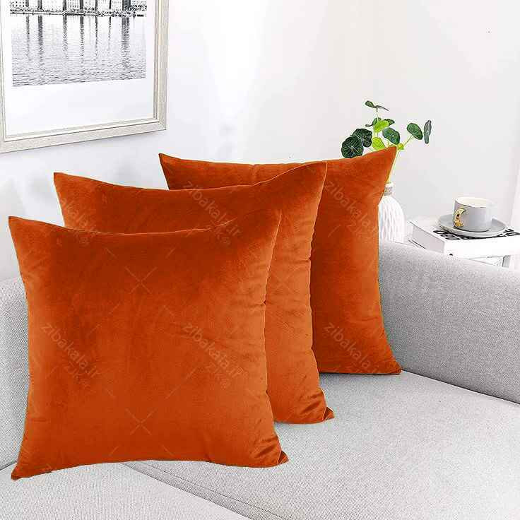 روکش کوسن ساده مخمل کالیفرنیا رنگ آجری ( نارنجی تیره ) 3عددی زیب مخفی