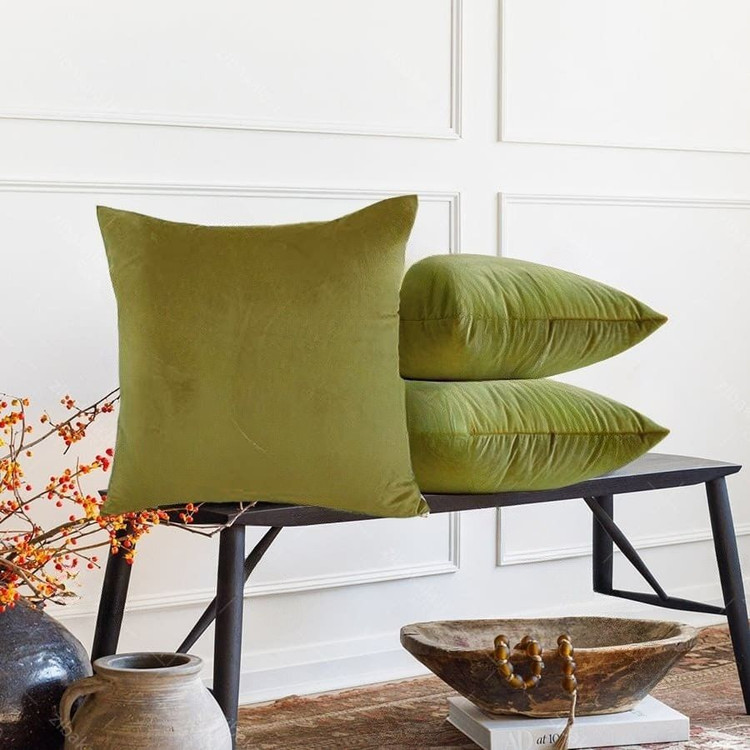 روکش کوسن ساده مخمل کالیفرنیا رنگ زیتونی 3عددی زیب مخفی