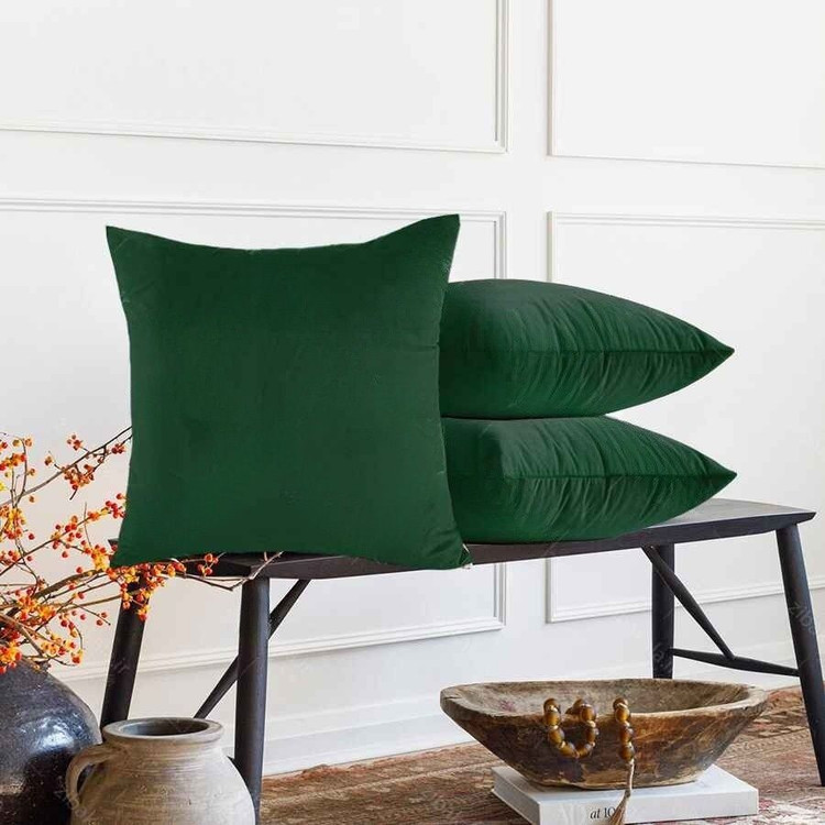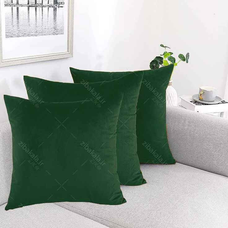 روکش کوسن ساده مخمل کالیفرنیا رنگ سبز کله غازی 3عددی زیب مخفی