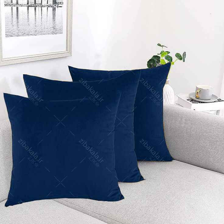 روکش کوسن ساده مخمل کالیفرنیا رنگ سرمه ای 3عددی زیب مخفی